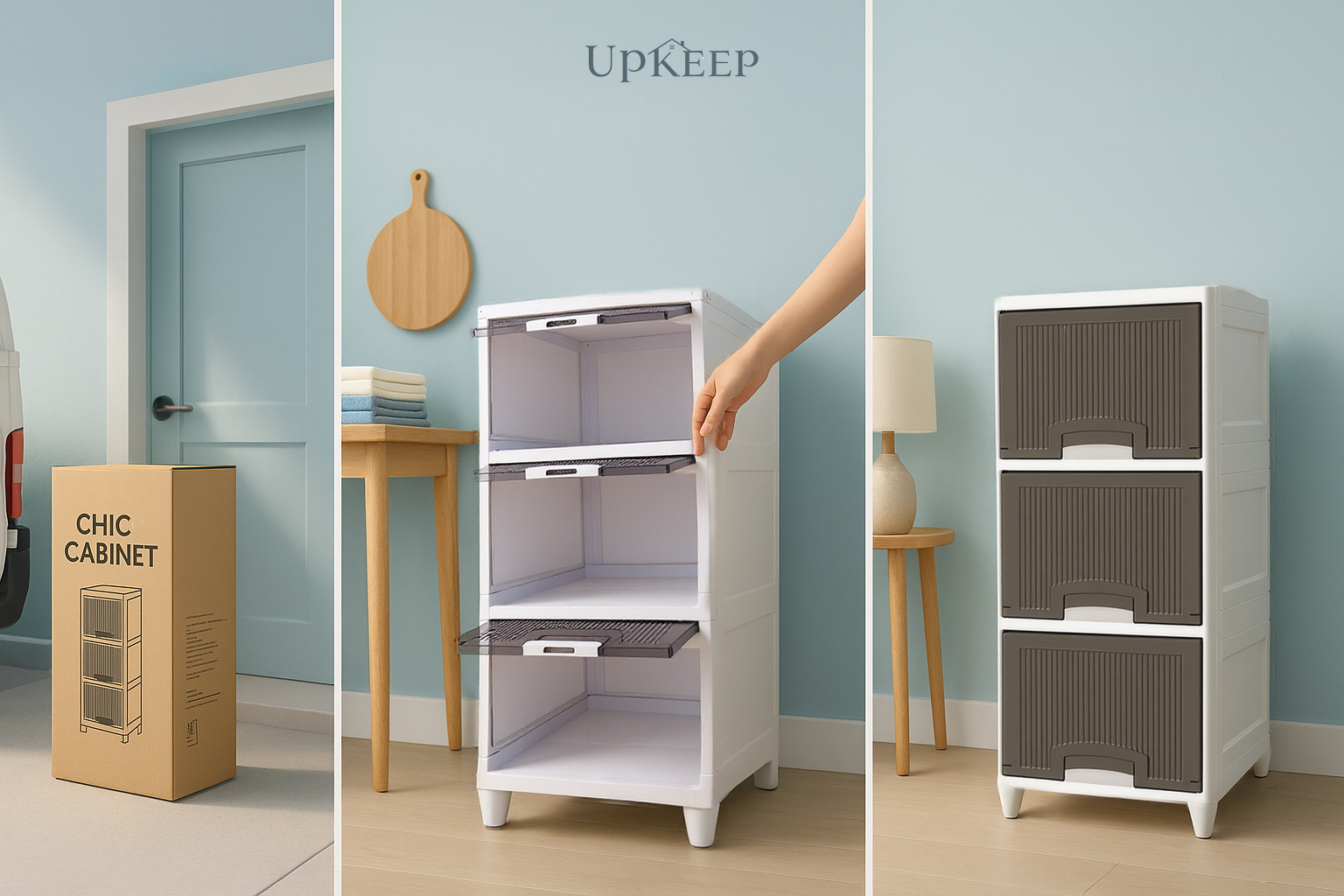 دولاب منظم رأسي بتصميم أنيق وسعة مرنة ينظم كل احتياجات البيت في مساحة صغيرة، بلاستيك متين صعب الكسر بحجم خفيف لسهولة التنقل