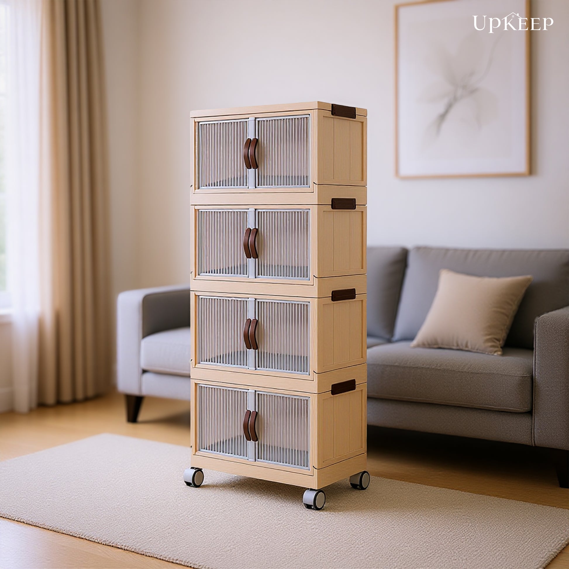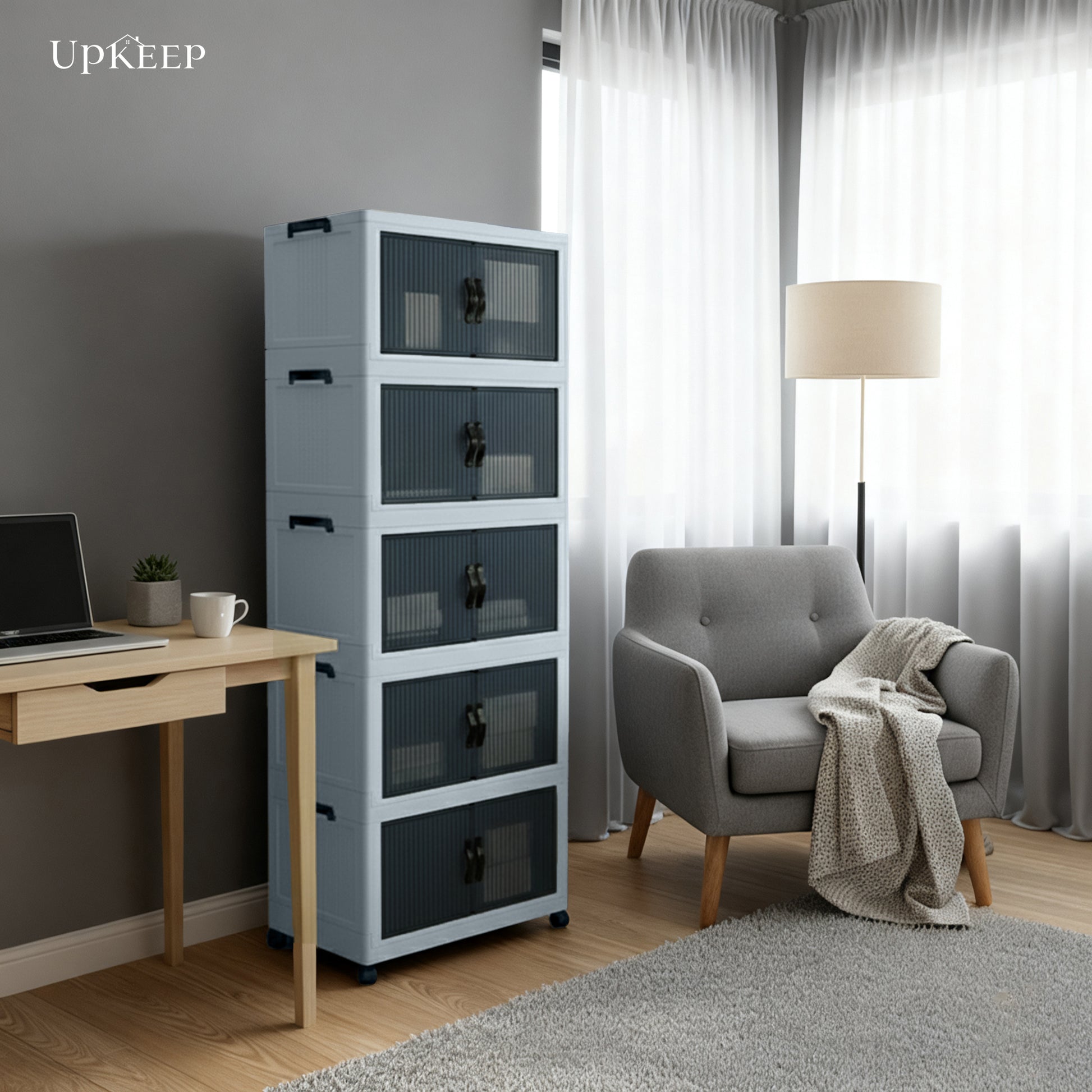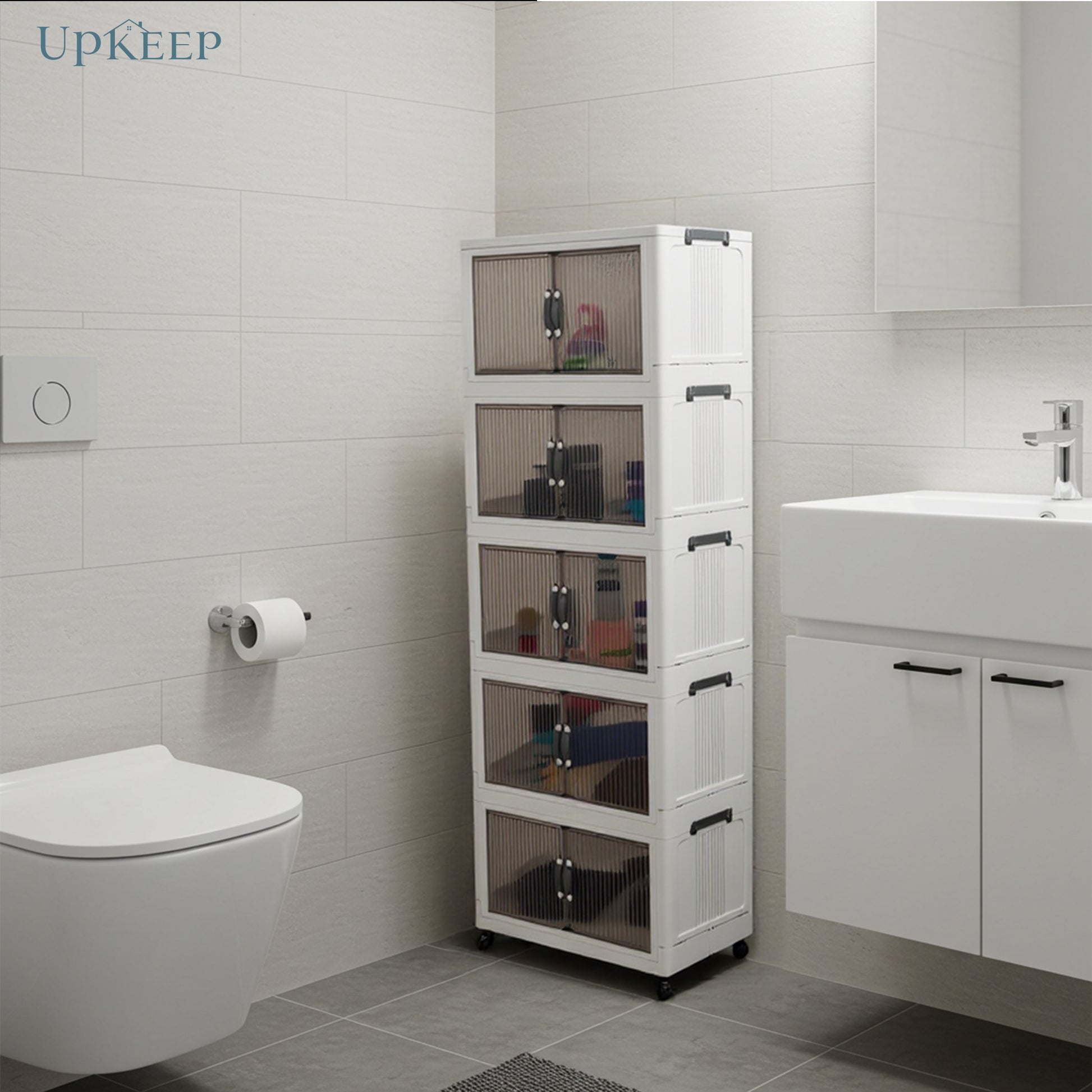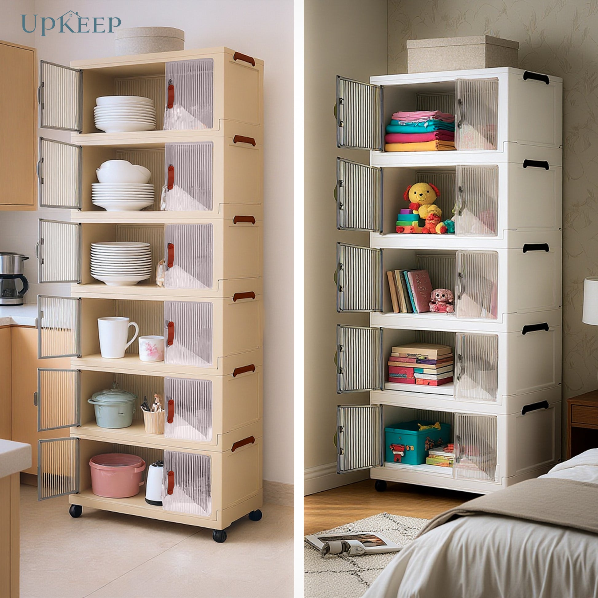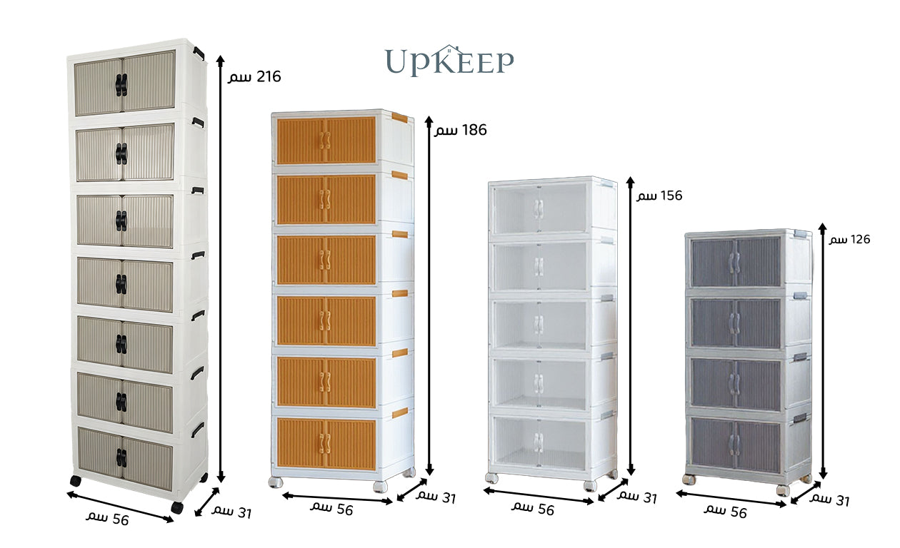 دولاب بلاستيك مقوى عملي وأنيق بمساحة تخزين واسعة، سهل التحريك وثابت في مكانه مناسب للاماكن الواسعة والاماكن الضيقة يتوفر بثلاث مقاسات: 4، 5، و6 دور.