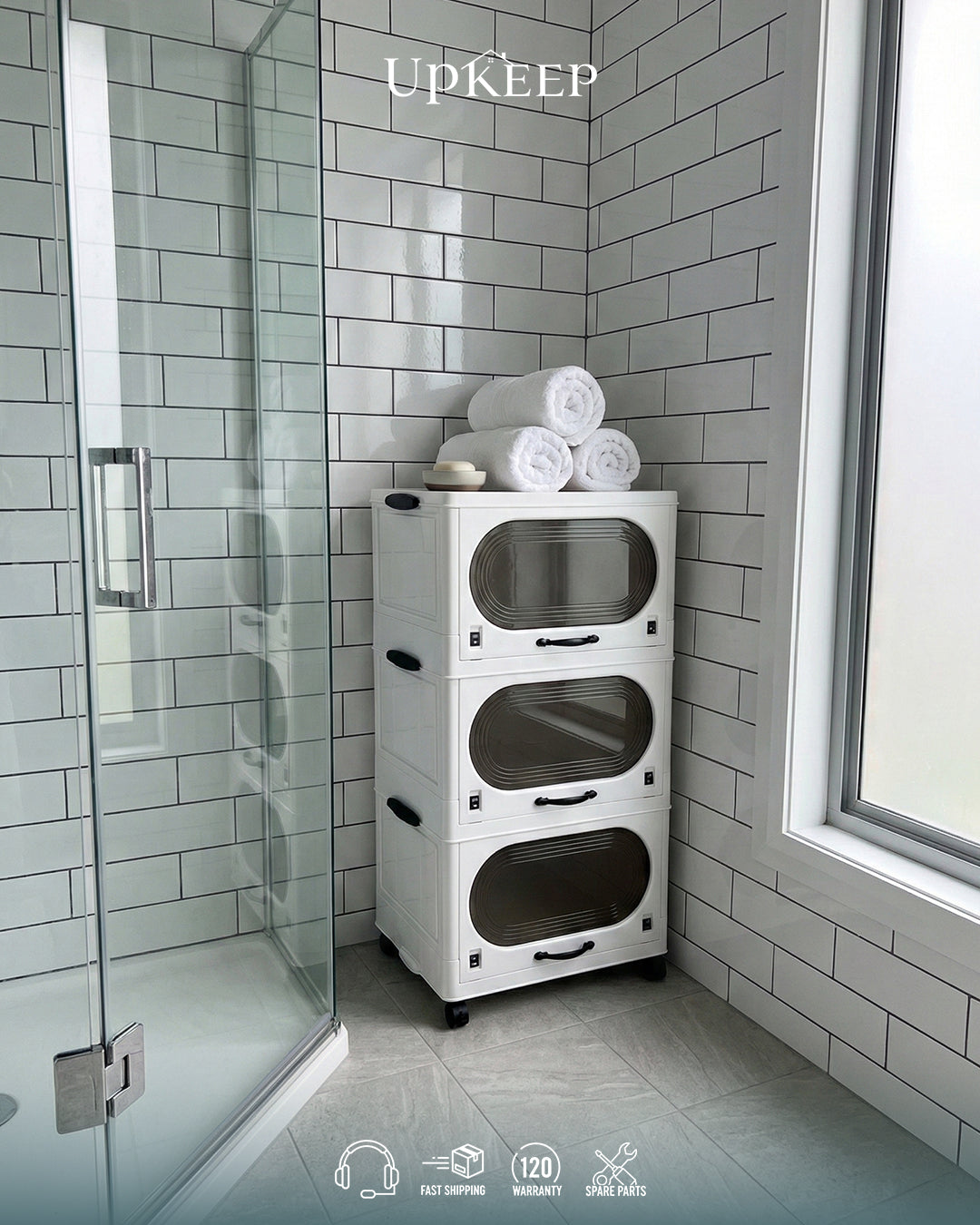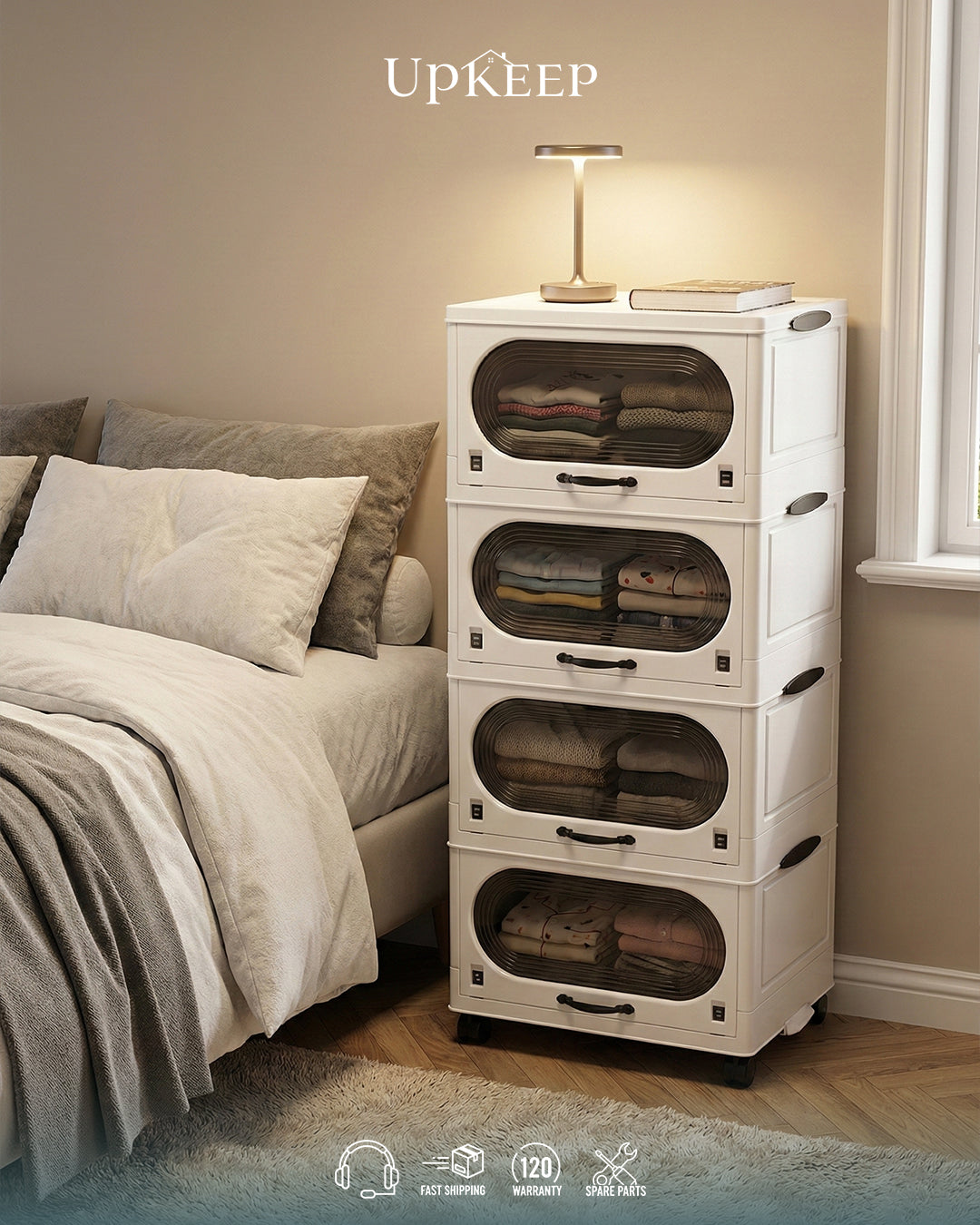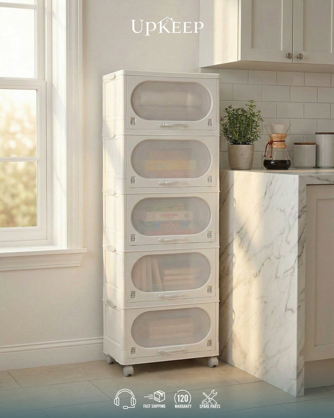 منظم عملي ورفيع وطويل، بمساحة تخزين كبيرة من غير ما ياخد مكان بخامة بلاستيك مقوى وأبواب اكريليك (3/4/5 دور)